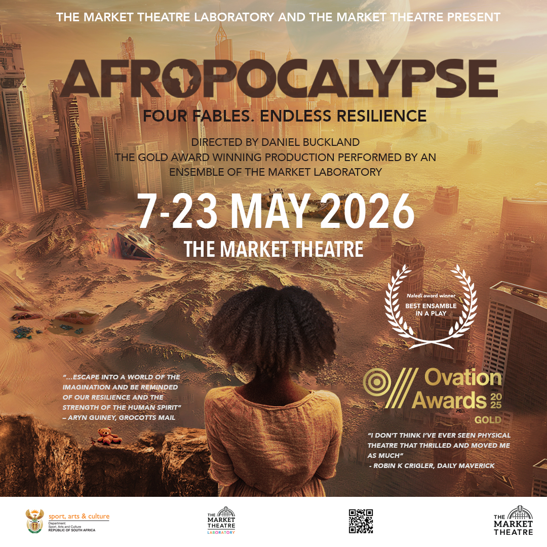 Afropocalypse, originally produced by The Market Theatre Laboratory in 2024 and directed by Daniel Buckland, returns to The Market Theatre for another professional season. This follows the show’s successful professional debut in 2025, which earned raving reviews.