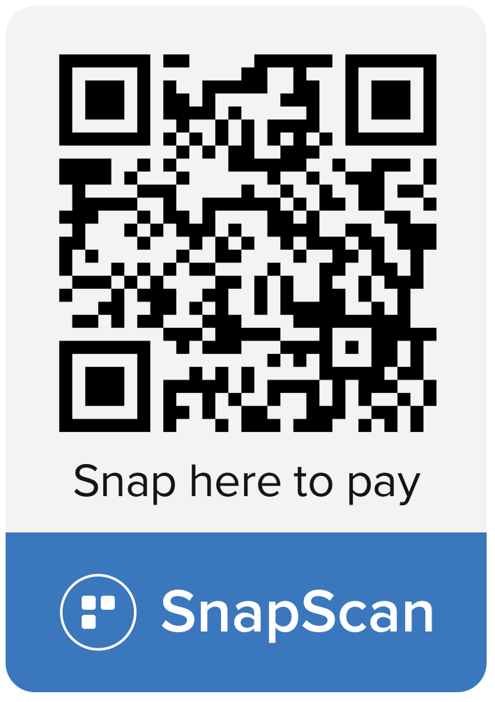 • By scanning this code you can pay by Snapscan (if you have the app installed), by Card or by Banking App