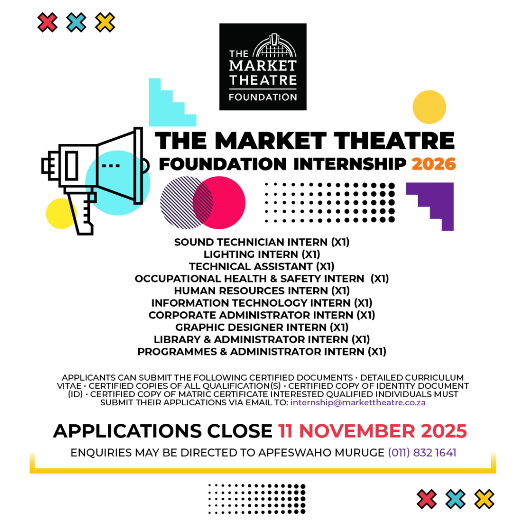 The Market Theatre Foundation in partnership with Yes4Youth Programme would like to give 10 unemployed young people the opportunity to gain skills and work experience for a period of 12 months.